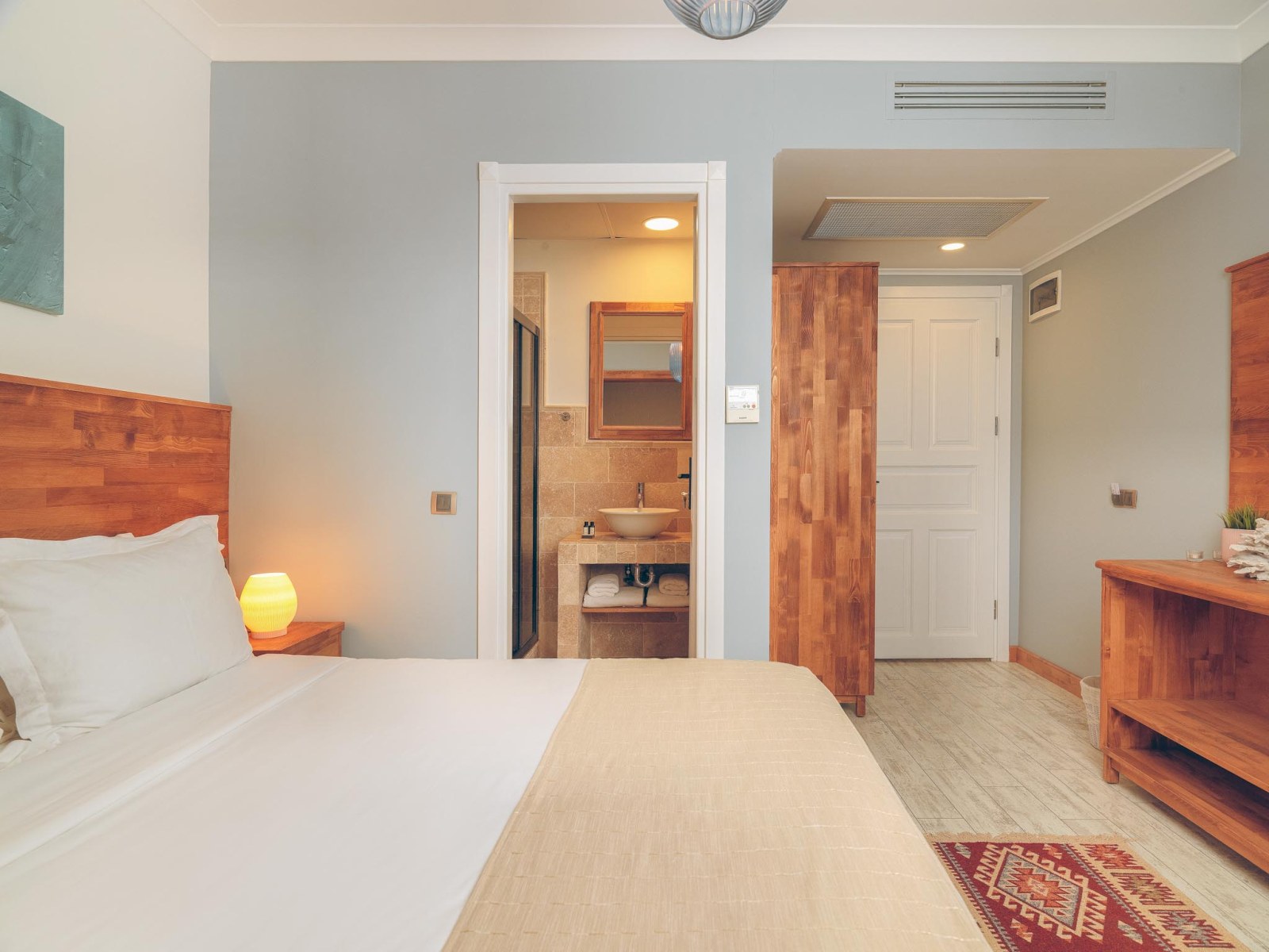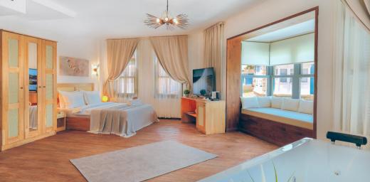 14 oda, şömineli salon, resepsiyon alanı, yönetici odası, mutfak ve bodrum kat (personel yatakhanesi, depo, teknik oda alanları)