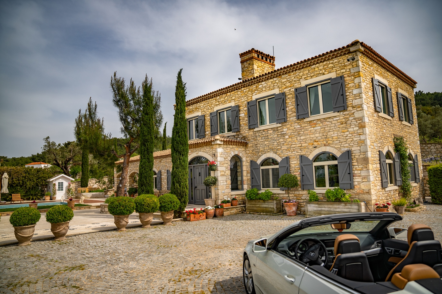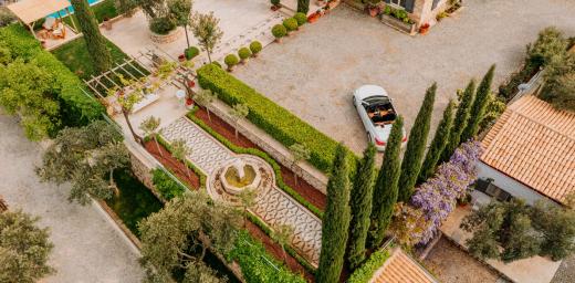 -İtalyan selvi ağaçları ve lavanta çalıları ile çevrili 240 Metre uzunluğunda, Arnavut kaldırımlı özel araba yolu Otomatik sulama sistemi 1.300 m2 taş duvar 25 KW dizel jeneratör Su yumuşatma sistemi, 16 ton su depolama tankı